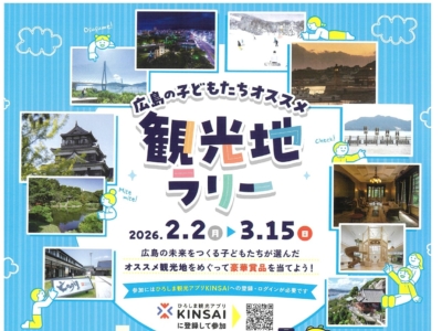 広島の子どもたちセレクトのデジタルスタンプラリー厳選25スポットにきのえ温泉ホテル清風館が選んでいただけました。 2026年2月2日(月)~3月15日(日)
