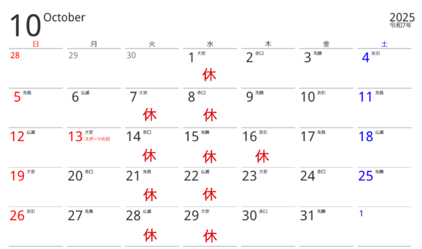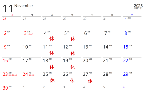 休業日・貸切カレンダー(ランチ営業のみとなります。)