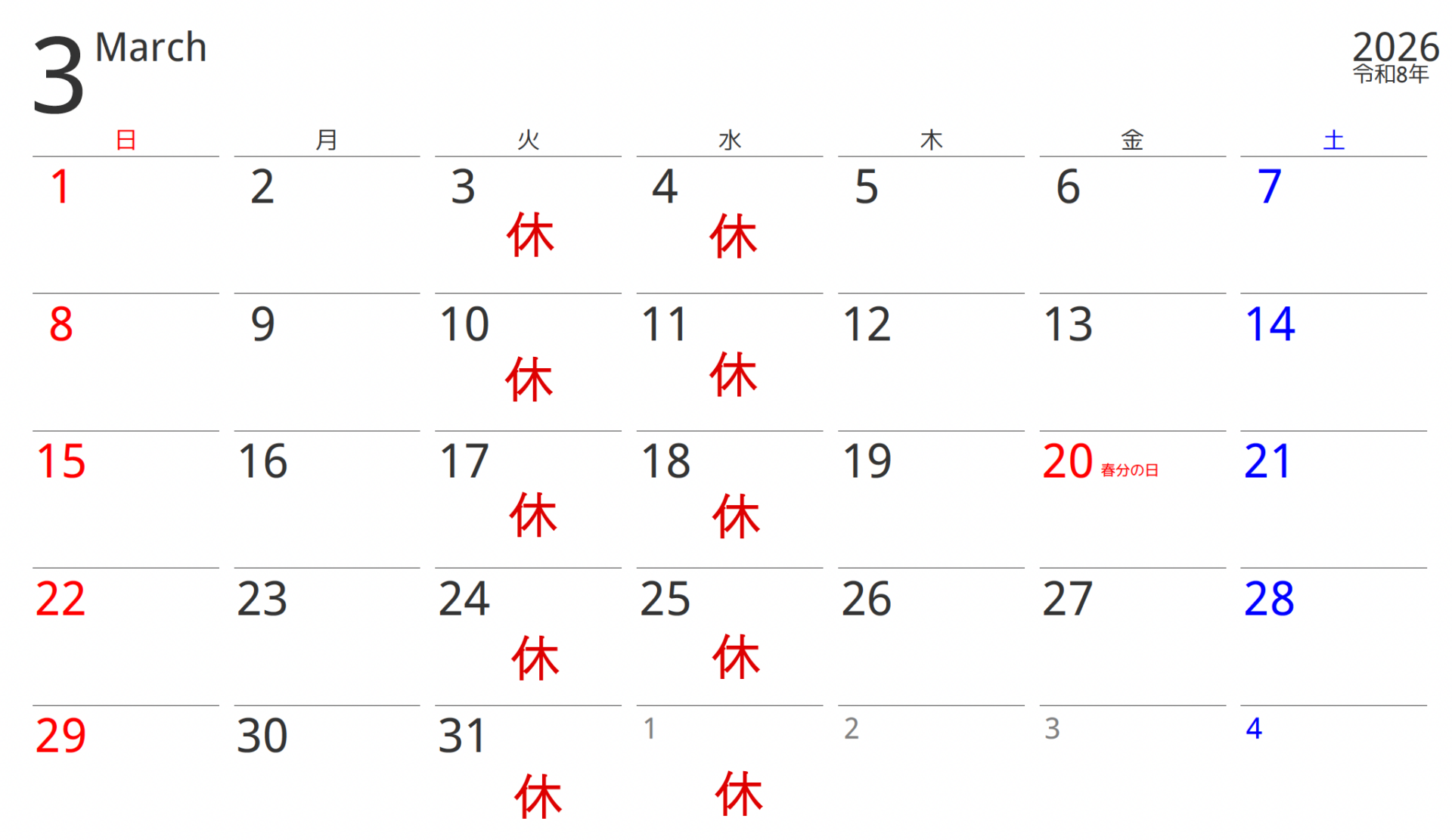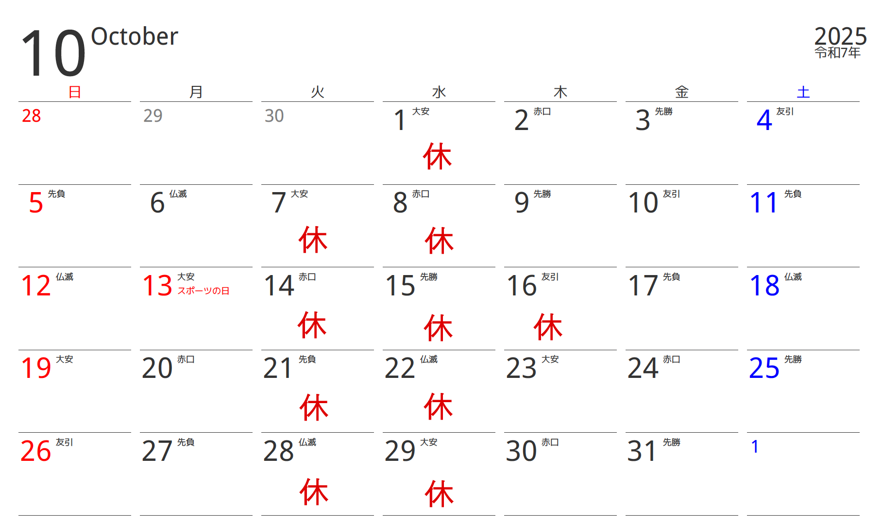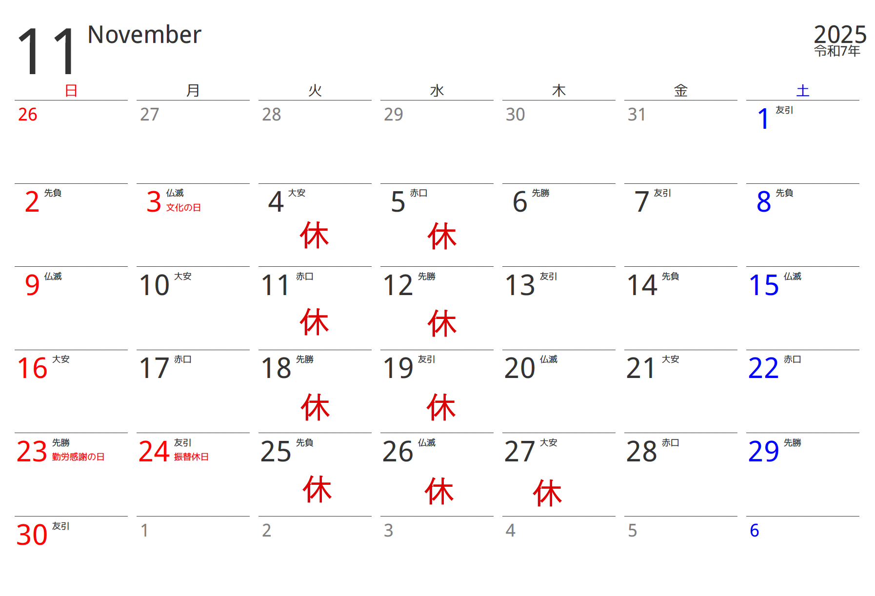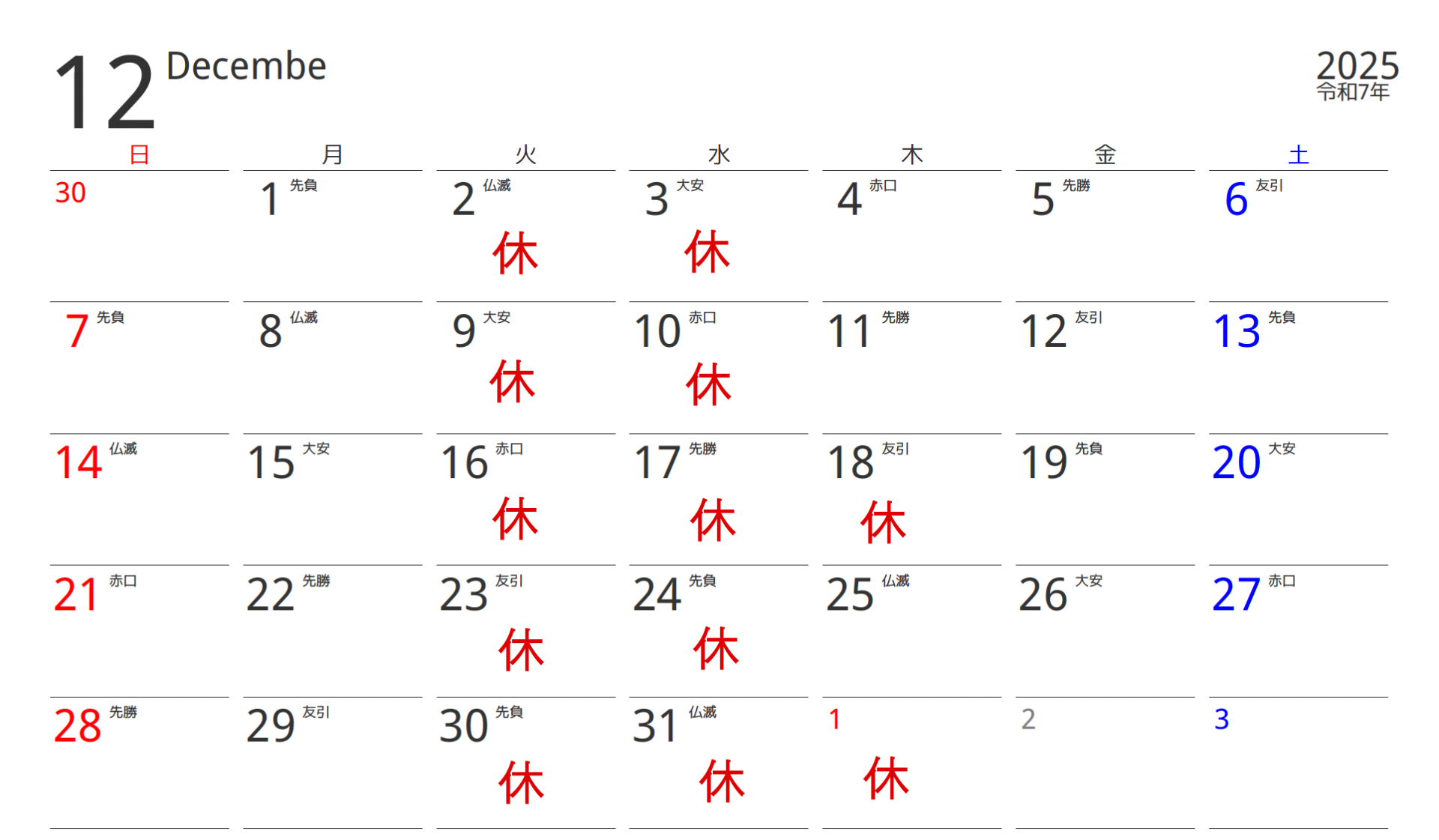 休業日・貸切カレンダー(ランチ営業のみとなります。)