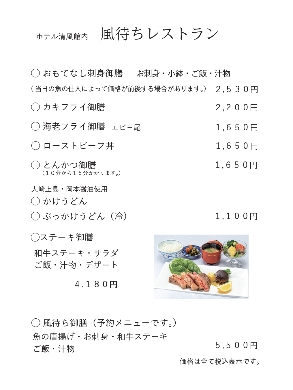 風待ちレストラン(テナント)営業日・メニューのお知らせ